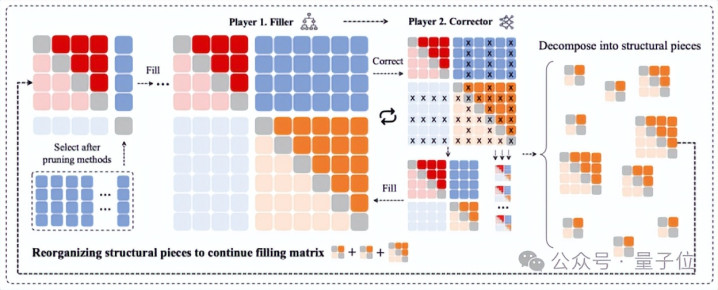 两个智能体通过「填充—修剪—解构出“碎片”—再填充」的协同机制,大幅降低了高维探索难度。