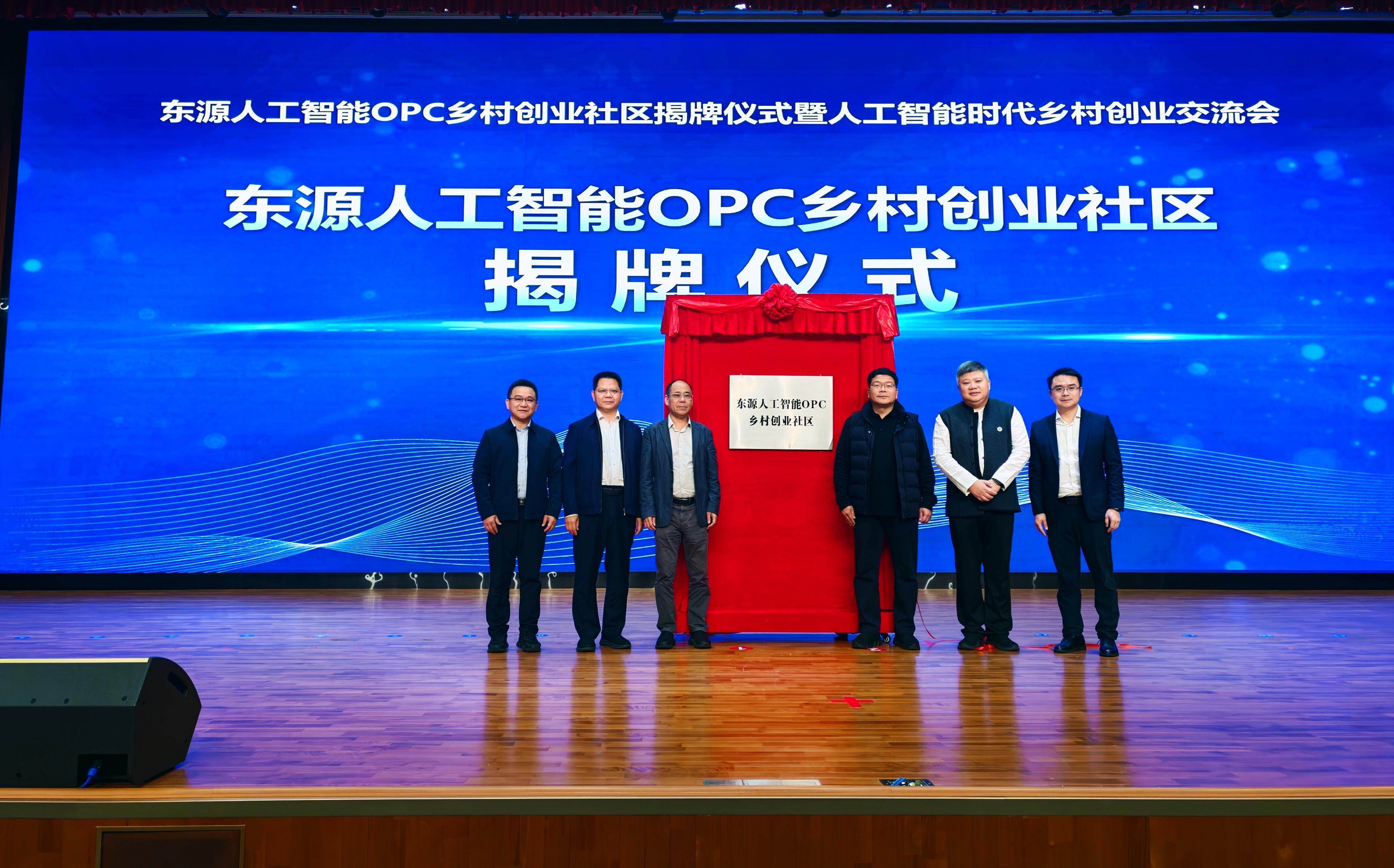 活动现场,随着红绸落下,东源人工智能OPC乡村创业社区正式揭牌。这标志着东源“AI+乡村”创新创业生态建设迈出了实质性步伐。